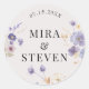 El rústico Pegatina redondo Boda floral floral clásico bohemio ofrece una encantadora mezcla de elementos rústicos y bohemios con delicados diseños florales, perfecto para añadir un toque de elegancia natural y capricho a las invitaciones de boda, los favores y la decoración.