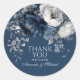 Pegatina redondo clásico con Boda floral gris y azul moderno