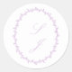 Pegatina de boda personalizada clásica con monograma floral elegante minimalista de lavanda y blanco con hojas pequeñas. Este producto es fácilmente editable. Si necesita ayuda con la personalización de esta tarjeta o necesita más productos coincidentes para esta colección, por favor envíeme un mensaje a través de Zazzle.