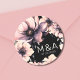 Pegatina Redonda Boda floral negro rosado moderno