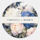 Pegatina Redonda Boda floral rosa azul marino y turbio Rubor