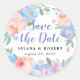 Pegatina Redonda Boda floral rosa y azul salva la fecha