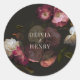 Pegatina Redonda Boda floral temperamental romántico oscuro negro b