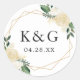 Pegatina Redonda Boda floral verde de oro moderno Monograma fecha