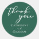Este sólido pegatina de boda verde esmeralda presenta un guión blanco clásico para una pareja que se casa en un bosque u otro lugar natural. Celebra tu amor con este tranquilo color y coordina con nuestra colección de tipografías minimalistas.