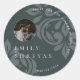 Pegatina Redonda Boda fotográfico clásico Gunmetal Green Damask
