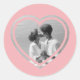Pegatina Redonda Boda fotográfico personalizado con forma de corazó