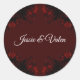 Pegatina Redonda Boda gótico elegante floral rojo profundo