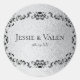 Pegatina Redonda Boda gótico Silver y Black Swirl