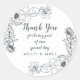 Pegatina Redonda Boda Gracias Contorno Floral Blanco Negro