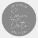 Pegatina Redonda Boda Gris Oscuro Estilizada Guardar la fecha