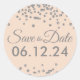 Pegatina Redonda Boda Guardar fecha Purpurina Plata Confetti Rubor