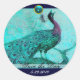Pegatina Redonda BODA LOVE PEACOCK azul acuamarina