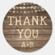 Pegatina Redonda Boda Luces de Madera Rústica Iniciales GRACIAS