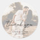 Pegatinas de boda con foto moderna con un diseño simple que incluye "gracias" en una letra rústica junto con sus nombres y fecha de boda sobre su foto favorita con una capa opaca. Esta elegante pegatina de boda con un diseño minimalista es ideal para personalizar los detalles para cualquier estilo de boda.
