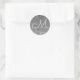 Pegatina Redonda Boda moderno monograma gris plateado elegante
