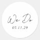 Elegantes pegatinas de bodas con un diseño sencillo y mínimo con "We Do" en una tipografía de escritura contemporánea. Un diseño clásico con un toque moderno.
