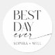 ¡Añade estos pegatinas del "Mejor Día de la Historia" a tus favores matrimoniales, obsequios, regalos, bolsos y más! Edita con tus nombres.