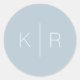 Pegatina Redonda Boda monograma azul turbio y moderno sencillo