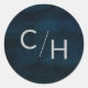 Pegatina Redonda Boda Monograma de acuarela azul oscuro