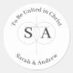 Pegatina Redonda Boda Monograma de Cruz y Anillos