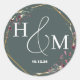 Pegatina Redonda Boda Monograma Elegante Moderno Dorado Floral