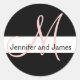 Pegatina Redonda Boda Monograma Nombres iniciales Blanco rosado Neg