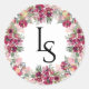 Pegatina Redonda Boda Monogramado de Borgoña y Luminoso