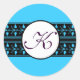 Pegatina Redonda Boda monogramo Bordes azules brillantes