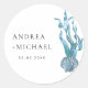 Pegatina Redonda Boda Nautical Blue Seashell Coastal Custom