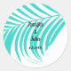 Pegatina Redonda Boda Náutico de hoja de palmera tropical azul verd