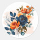 Pegatina Redonda Boda Navy Blue y Naranja Peony