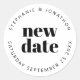 Pegatina Redonda Boda Nueva fecha Nombres texto simple blanco negro