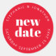 Pegatina Redonda Boda Nueva fecha Nombres texto simple Rojo blanco