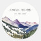 Pegatina Redonda Boda paisajístico Rocky Snow Mountain Watercolor