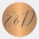 Elegante y lujoso pegatina de boda de cobre metálico de lujo y medianoche de color azul marino con monograma de iniciales de nombre de novia y novio. ++++ Adecuado para interiores elegantes y clásicos de corbata negra glamorosos para cualquier temporada de bodas. +++++++++++ Invitación y diseño de fondo coincidente disponibles en la colección.