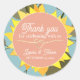 Moderno, boho, botánico, azul polvoriento y boda melocotón gracias pegatina por los favores con elegante corazón de cuerda dorada, girasol y escritura a la moda.