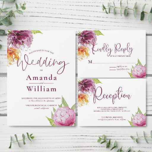 Elegante diseño de Boda acuarela floral. Si desea cambiar las fuentes, haga clic en personalizar más adelante. Por favor, visite mi tienda para más productos a juego.