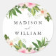 Pegatina Redonda Boda personalizado de floral rosa suave