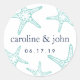 Pegatina Redonda Boda personalizado de Starfish turquesa y marina