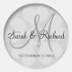 Pegatina Redonda Boda Plata Clásico Monograma Novia Y Groom