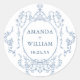 Pegatina Redonda Boda Polvorienta Azul de Encaje Victoriano Ornate