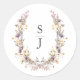 Pegatina redondo clásico boda de flores silvestres moradas. Es fácil cambiar el texto. Bonito monograma acuarela floral.