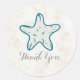 Perfecto para un boda de temática náutica es este Boda estelar rustico Gracias Pegatinas con una estrella de mar de color azul oscuro sobre un fondo de mármol beige claro. Estos clásicos y sencillos pegatinas de bodas en la playa son fáciles de personalizar con los detalles de su boda. Para obtener más opciones de personalización, haga clic en Personalizar.