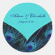 Pegatina Redonda Boda Real Verde azulado de pavo real azul