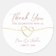 Muestra tu gratitud con estilo con este elegante boda redondo gracias pegatina. Con un suave guión rosa polvoriento emparejado con un romántico diseño cardíaco de cuerda dorada, este pegatina minimalista es el toque final perfecto para bolsas de favores, sobres o empaque de regalo. Personalizado con sus nombres y fecha de boda, complementa los temas modernos, románticos y de boda de moda. Una manera elegante y sincera de agradecer a sus invitados por celebrar su día especial.