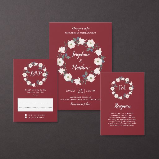 Blush Floral Wreath Burgundy Wedding Diseñado por Gail K