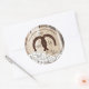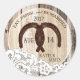 Pegatina Redonda Boda Rustic Wood Lace Horseshoe