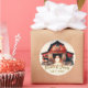 Pegatina Redonda Boda Rústica del Antiguo Granero Rojo