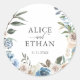 Pegatina Redonda Boda Rústico Boho Dusty Blue Flowers